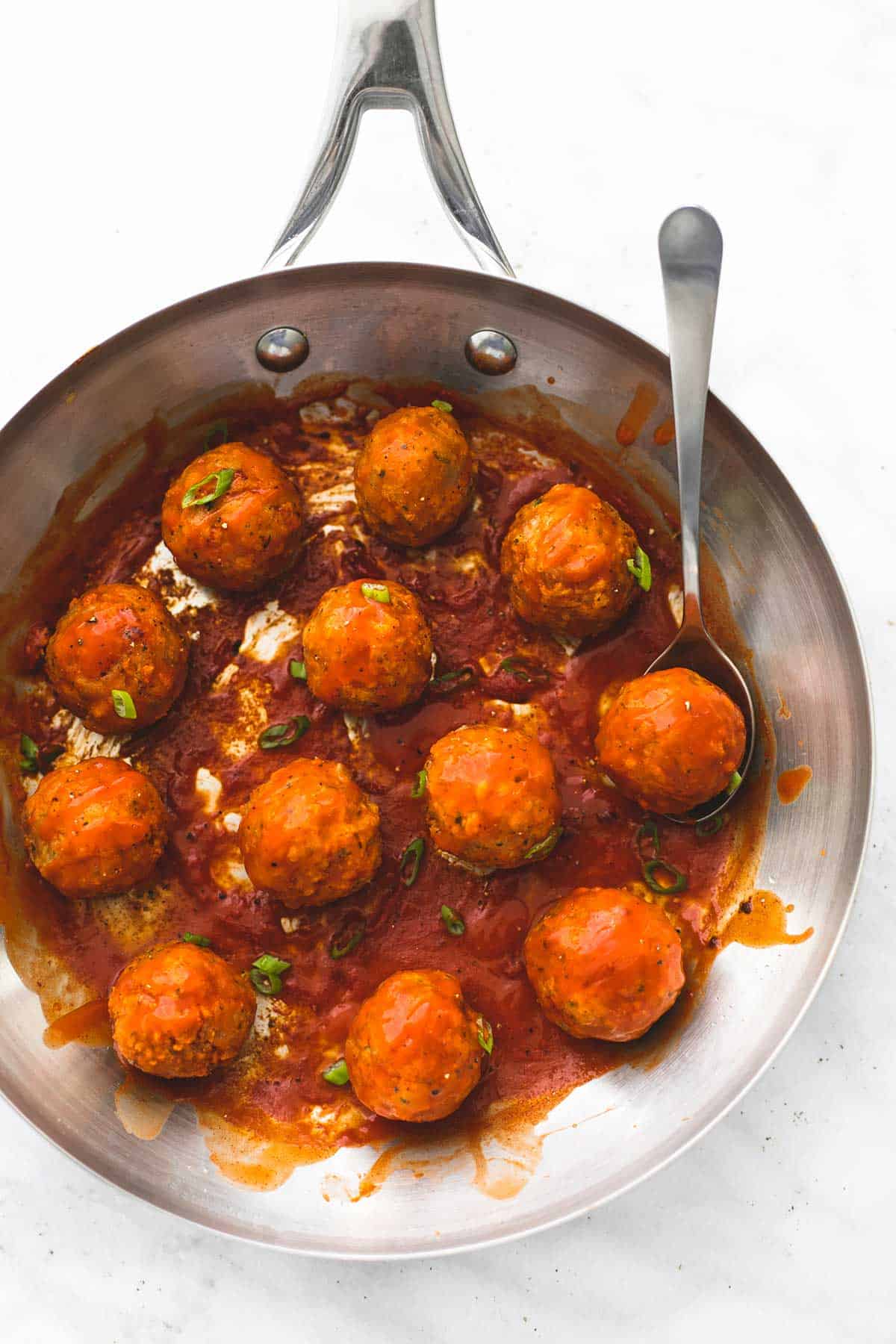 Place 2 chicken pieces on each plate. Marinating the chicken in buttermilk and hot sauce, and upping the hot sauce levels are a must. For the buffalo chicken meatballs: Brush the chicken with half the buffalo sauce and return to the oven to bake the sauce into the chicken, 3 to 5 more minutes. Blue cheese dipping sauce (see recipe).